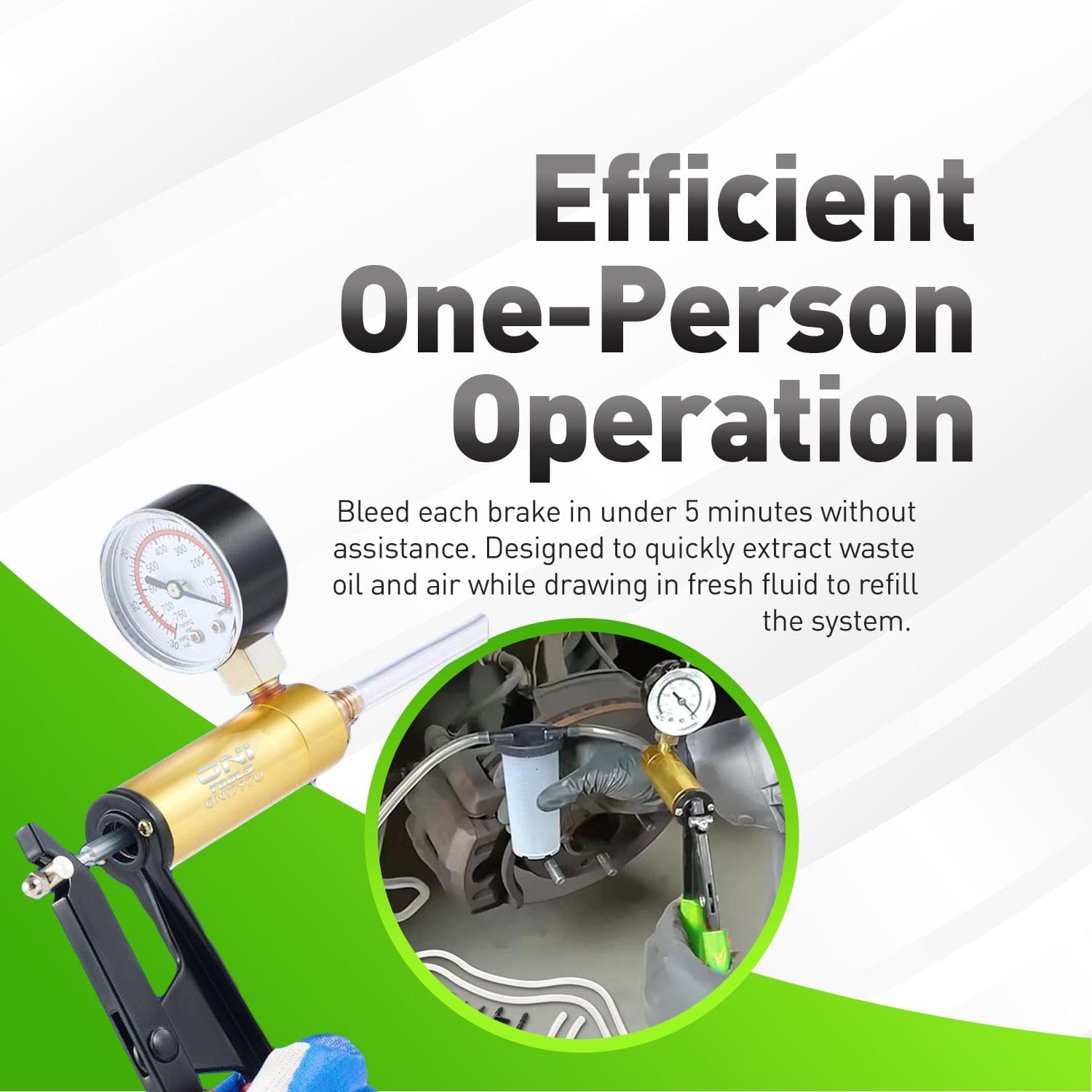 • One-person bleeding: pull air/fluid fast—reduce mess, save time, no helper needed