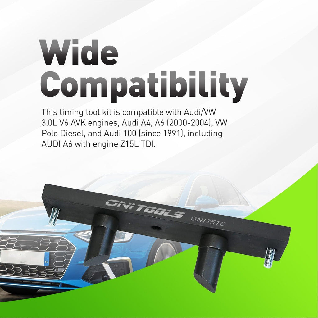 Take the guesswork out of Volkswagen/Audi 2.0 FSI timing jobs. The Oni Tools Camshaft Timing Lock Tool Kit is engineered for accurate cam alignment on non-turbo FSI engines, helping prevent timing errors during chain or belt service. Coverage includes common engine codes AWA, AXW, BHD, and BMB found in Audi A3 and VW Golf/Touran models. The kit replaces OEM service tools T10252, T10115, and T10020 and includes the correct T40080 M10 polydrive socket—required for the camshaft adjuster locking bolt (not Torx/RIBE). Precision-machined components hold timing reliably while you swap chains, tensioners, or seals. Built from hardened steel with a chain tensioner retainer, locating/locking pins, and a tensioner bolt to keep everything stable. Ideal for professional technicians and skilled DIYers seeking dealership-level results at a shop-friendly cost. (OEM part numbers used strictly for reference.)