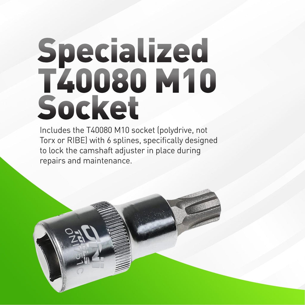 • Replaces OEM tools T10252, T10115, T10020; includes T40080 M10 polydrive socket for adjuster bolt.