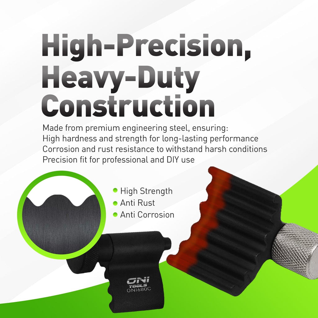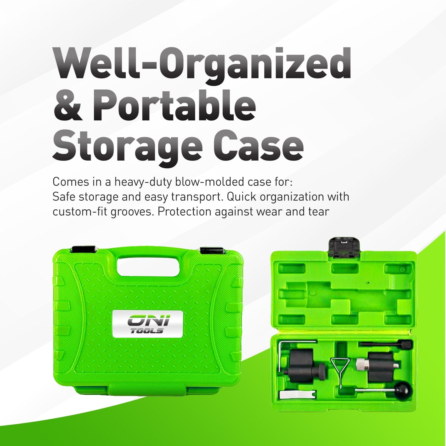 Make Model Engine Years Audi A3 2.0L TDI PD DOHC 2010–2013, 2015–2016 Audi A4 2.0L TDI PD DOHC 2009–2015 Audi A6 2.0L TDI PD DOHC 2005–2011 Volkswagen Beetle 2.0L TDI 2013–2015 Volkswagen Golf 1.9L & 2.0L TDI PD DOHC 2012–2013, 2015–2016 Volkswagen Jetta 1.9L & 2.0L TDI PD DOHC 2009–2015 Volkswagen Passat 2.0L TDI PD DOHC 2012–2015 Volkswagen Touareg 2.0L TDI PD DOHC 2008–2010 Oni Tools Diesel Timing Alignment Tool Kit delivers professional-grade precision and reliability for timing belt maintenance on VW, Audi, SEAT, and Skoda TDI PD DOHC engines (1.9L & 2.0L). This comprehensive kit features OEM-style locking tools T10050 and T10100 for secure crankshaft and camshaft positioning, preventing costly timing misalignments. Includes 2 Injection Pump Camshaft Alignment Pins (T20102 3359), a V-Belt Tensioner Locking Pin (T10060A), and a Ribbed Belt Tensioner Locking Pin (T10115). Crafted from high-strength, corrosion-resistant alloy steel, each piece withstands repeated use in demanding workshop environments. Whether you’re a seasoned technician or a DIY enthusiast, the user-friendly design and included locking pins ensure fast setup, accurate alignment, and hassle-free operation. Backed by Oni Tools’ commitment to quality, this kit reduces downtime and safeguards engine performance, making it the ultimate solution for professional timing belt service and engine optimization.