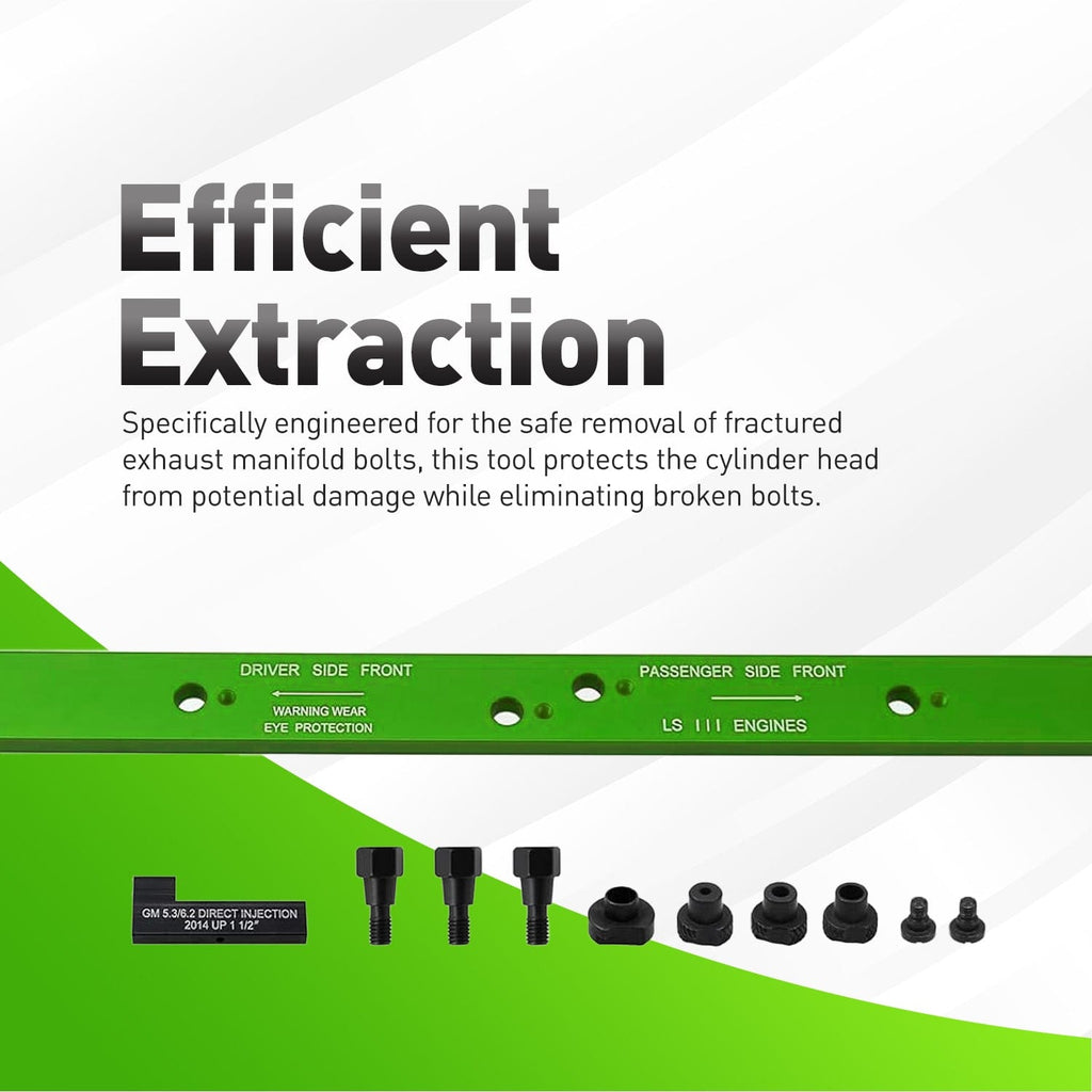 Stop fighting seized exhaust manifold bolts on GM LS trucks. The Oni Tools Exhaust Manifold Drill Template Kit delivers a precise, cylinder-head-safe way to drill and extract broken studs on GM/Chevy/GMC LS III 4.8L, 5.3L, and 6.0L engines. The machined base plate indexes off factory bolt holes while tapered alignment bolts and slip-fit, hardened bushings keep the bit straight so you can drill pilot, step, and tap-size holes with confidence. Use the included bushings to walk port-to-port without resetting the plate, then drive your extractor or tap to finish the repair. Built for professional technicians and serious DIYers, this jig solves the common LS manifold leak/bolt failure quickly—no head removal, no guesswork, and no damaged threads. Ideal for Silverado/Sierra, Tahoe/Suburban, Yukon, and 2500/HD platforms from 1999–2007. Replace dealer-only procedures with a repeatable, profitable process.