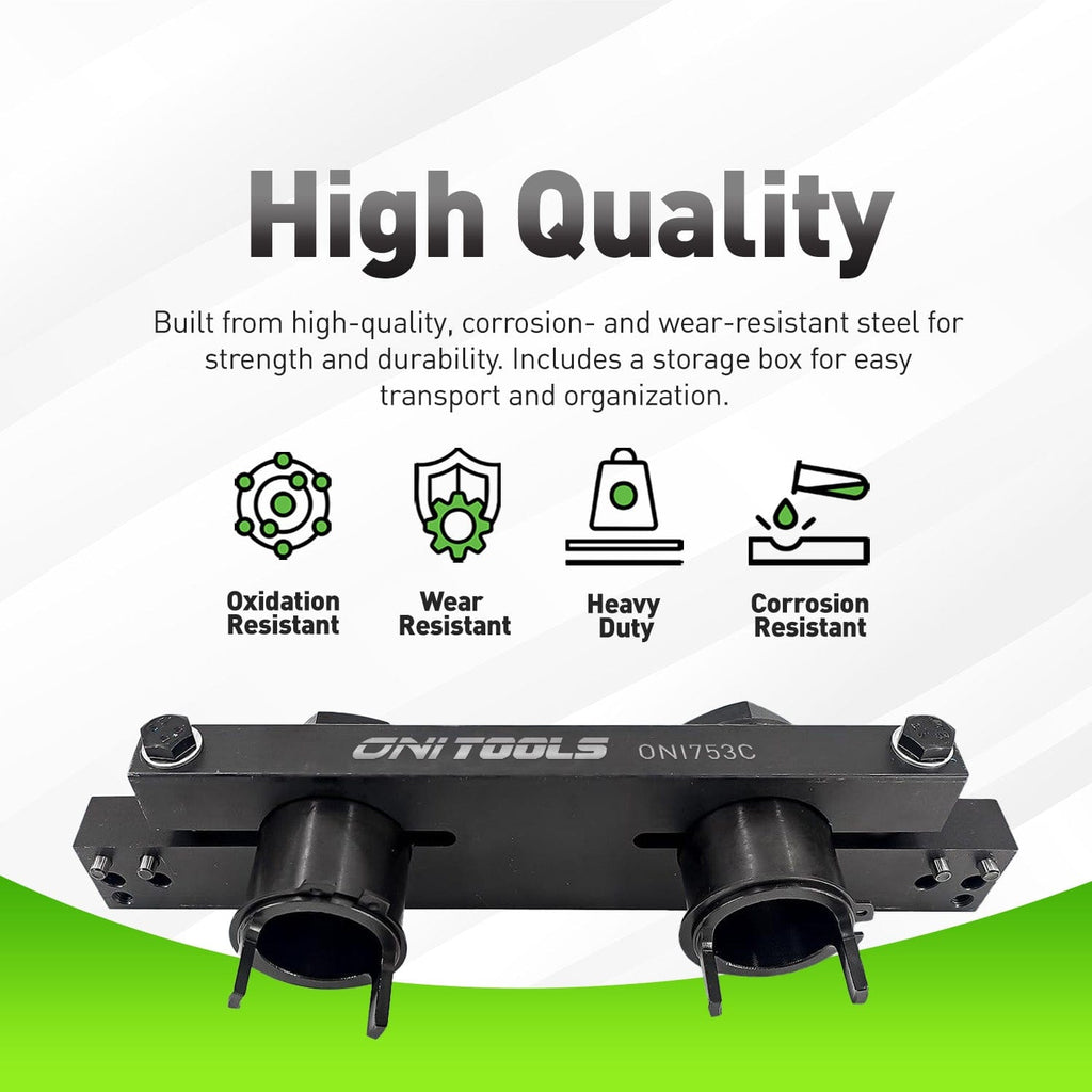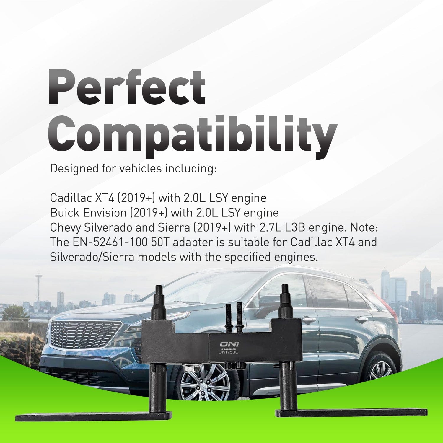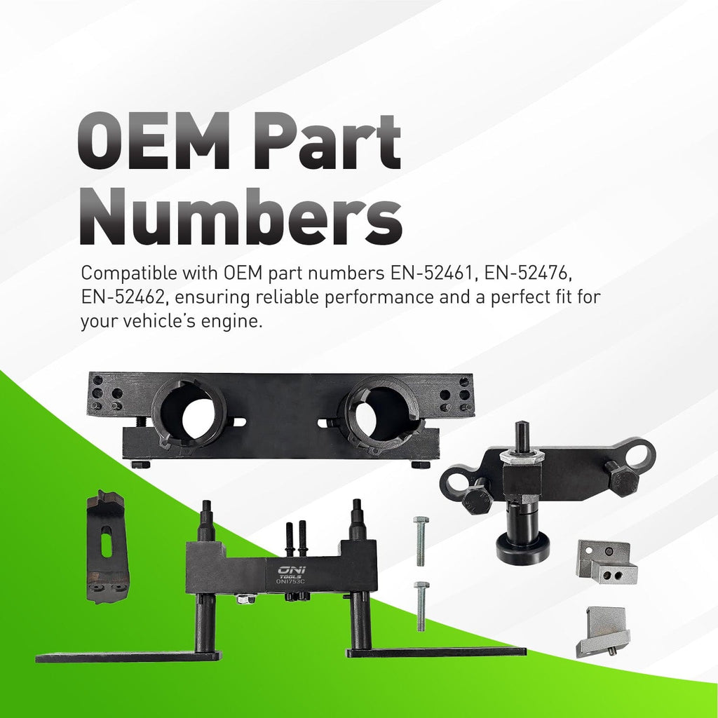 Service GM’s latest turbo fours with confidence. The Oni Tools Camshaft Alignment & Timing Kit precisely locks camshafts and the flywheel to maintain factory cam phasing during timing chain, actuator, and OCV work. Engineered as an alternative to EN-52461, EN-52462-A, and EN-52476, this kit delivers shop-grade accuracy for 2.0L LSY and 2.7L L3B engines—common in Cadillac XT4, Buick Envision, and Chevrolet/GMC 1500 trucks. Heat-treated steel and machined interfaces reduce deflection, protecting valve train geometry while speeding teardown and reassembly. For L3B applications, use the required torque-reaction adapter (EN-52461-200). Whether you’re an independent shop or a skilled DIY owner, Oni Tools brings OE-level alignment, durable construction, and clear labeling so you can finish the job right the first time.