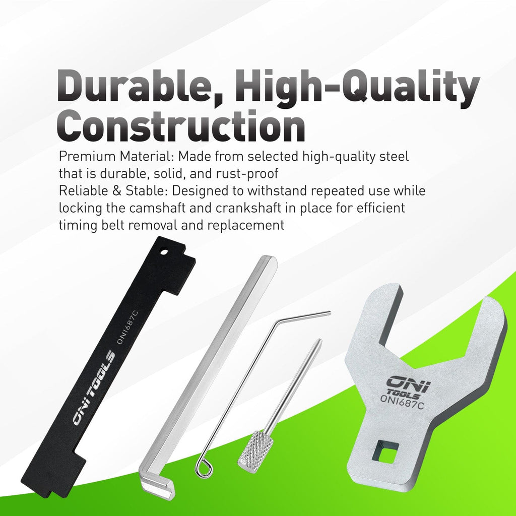 Oni Tools Engine Timing Tool Kit is expertly engineered for precision engine timing on GM 1.4L, 1.6L and 1.8L 16V engines. This comprehensive 9-piece set features CNC-machined steel tools, including a camshaft sprocket locking tool (replacing KM-6340) J-43037, camshaft locking bar (replacing KM-6628-A), crankshaft locking pin (replacing KM-6625), timing belt tensioner pin (replacing KM-6333), water pump wrench and more. Crafted from hardened, rust-resistant steel, each component delivers consistent, long-lasting performance, while the blow-molded carrying case keeps everything organized and protected. Designed for seamless fitment with Chevrolet Cruze, Aveo, Orlando; Alfa Romeo 159; Fiat Croma; Vauxhall/Opel Astra models (2003–2020), this kit simplifies timing belt service, prevents misalignment, and reduces the risk of costly engine damage. Whether you’re a professional technician or a dedicated DIYer, Oni Tools provides reliable, OEM-equivalent timing solutions that make engine servicing quick, safe, and efficient.