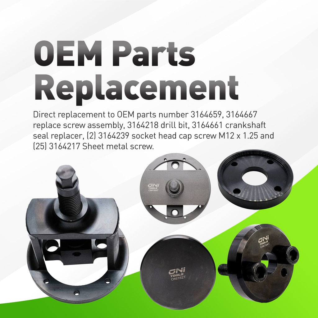 • Oni Tools Front & Rear Crankshaft Seal with Wear Sleeve Puller & Installer Tool Set is compatible with multiple seals and wear sleeves such as 3937111, 3904353, 3802820, 3934486, 5259499, 3926126, 3925529 and 4890833.