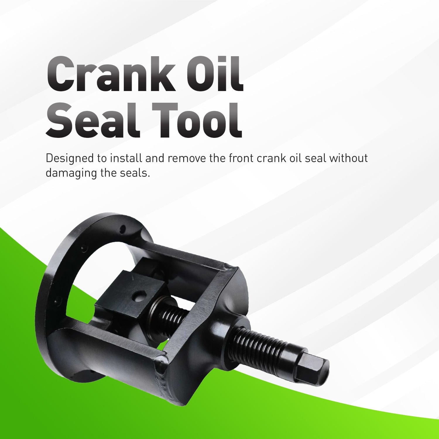 • Our repair tool kit is made to properly press the crank seal without leaks. Installing the seal uneven can cause it to leak prematurely. Make sure of the correct depth when you install the crankshaft seal.