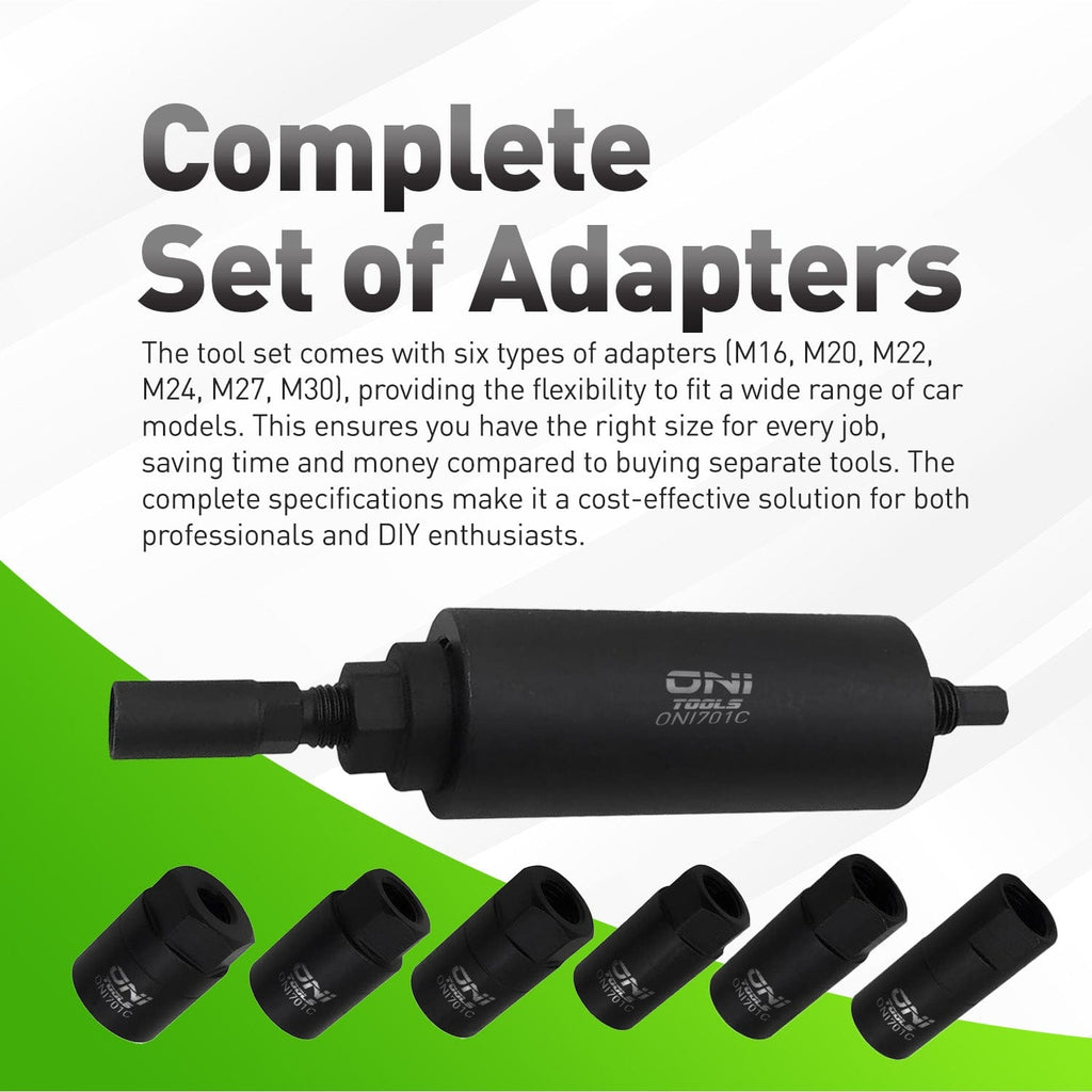 • Six precision adapters: M16/20/22/24/27/30 x1.5 for broad Euro coverage; threads match OEM puller specs.