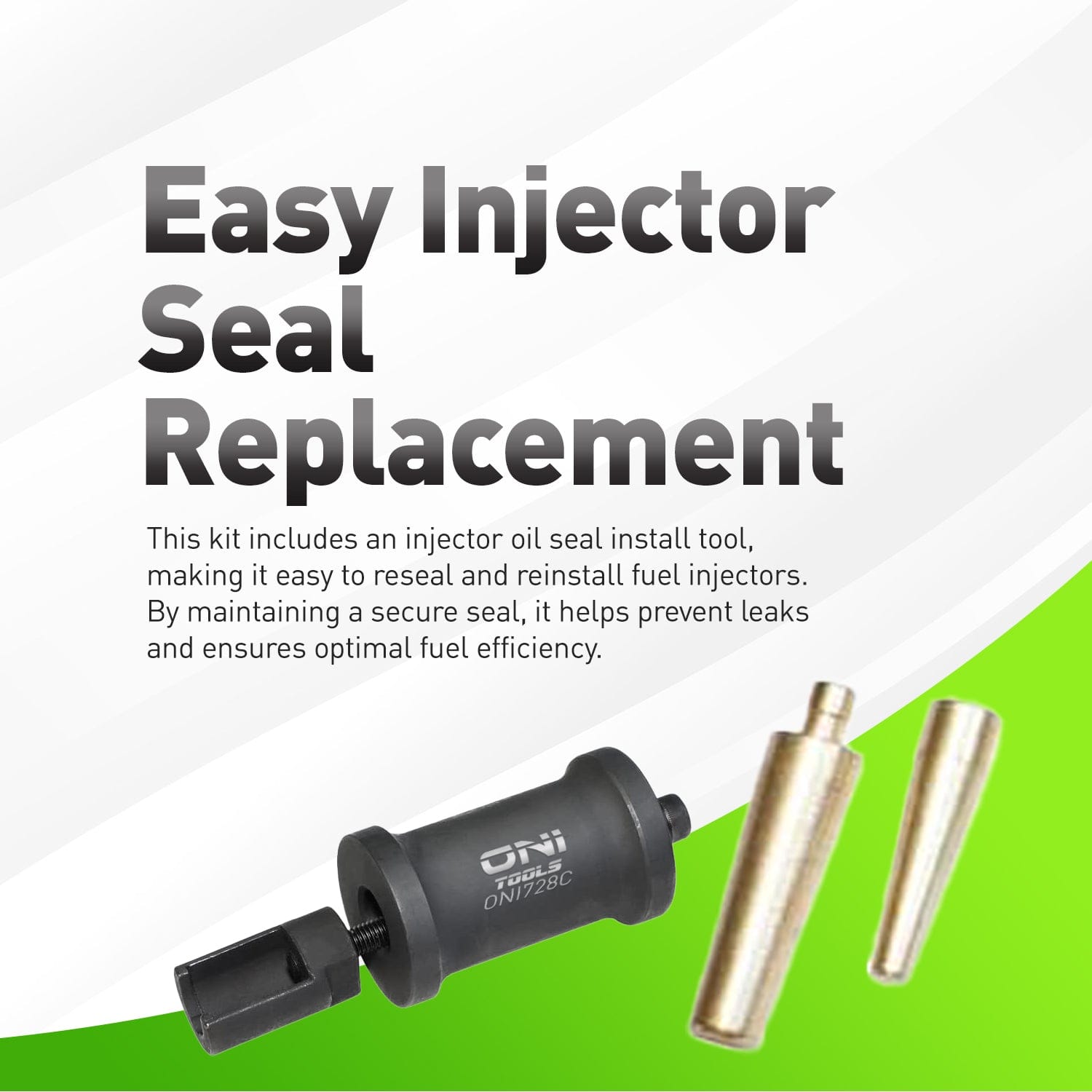 Complete puller & installer kit for high-pressure injectors; restores PTFE tip seal sizing to OE spec for clean seating and no leaks.