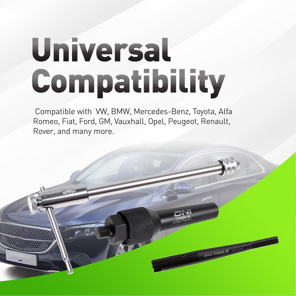 Stop pulling cylinder heads just to free a snapped glow plug. The Oni Tools Damaged/Broken Glow Plug Remover Kit is engineered to extract fractured, seized, or headless glow plugs cleanly from the cylinder head. The set covers the most common diesel threads (M8x1.0, M10x1.0) with guided step drills, pilot sleeves, tap set, centering mandrels, puller housing, force screw/nut, and star socket so you can drill, tap, and pull on-axis for a safe removal. It’s a professional alternative to OE tool group 642 589 00 99 00 and related sub-components, as well as the well-known AM-3381 kit. For GM diesel techs, this kit supports the 6.6L Duramax LB7 (2001–2004) when paired with the M10x1.25 tap; it’s also commonly used on Mercedes-Benz Sprinter 2.7L/3.0L applications using M8/M10 threads. Built with high-tensile components and packed in a blow-mold carry case, it delivers fast, repeatable results for shop professionals and serious DIYers alike.