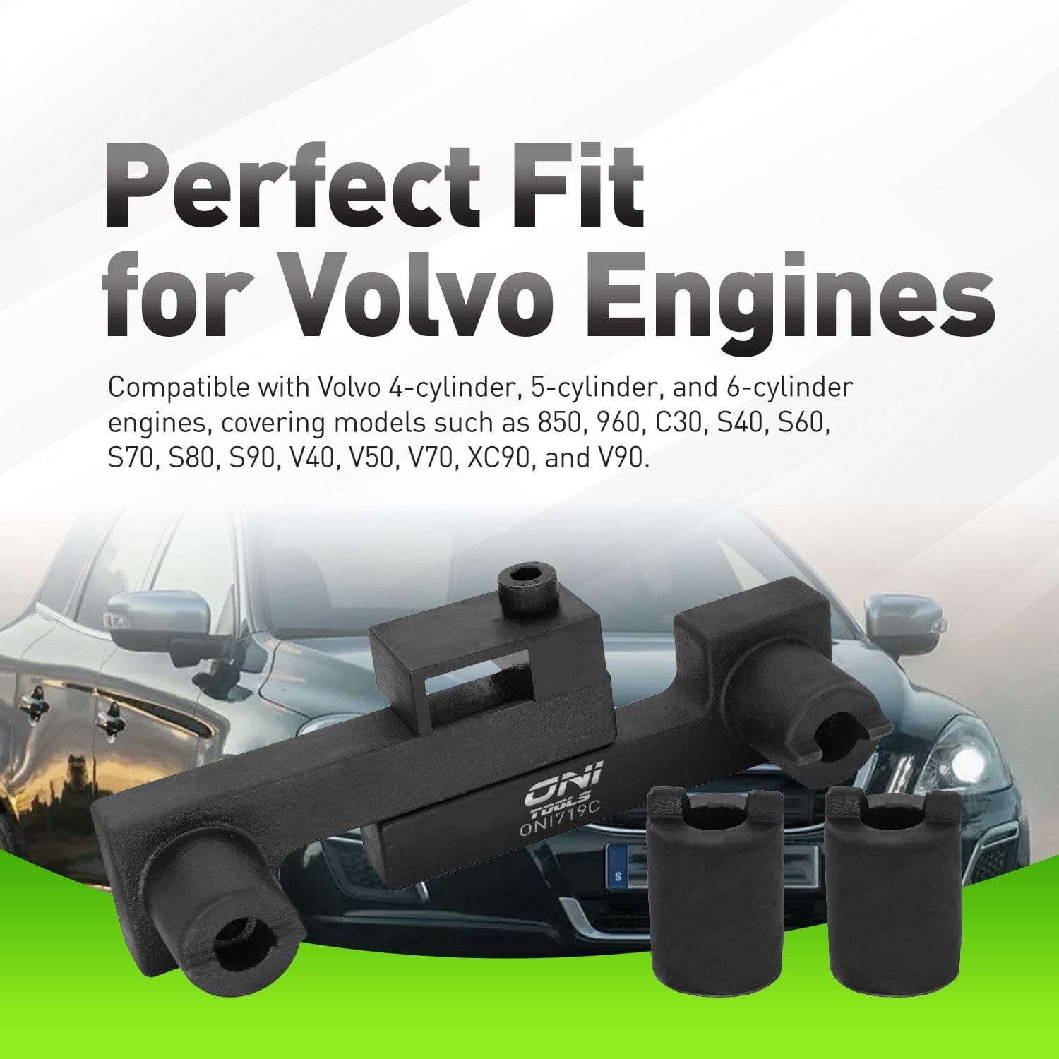 Lock in factory-correct cam timing on Volvo “whiteblock” engines with the Oni Tools Camshaft Alignment & Locking Tool—our professional alt to Volvo 9995452. Designed to secure both camshafts at TDC, it prevents cam movement while you service timing belts, VVT hubs, seals, or reseal the cam cover, delivering consistent, repeatable results for pros and DIYers alike. Coverage spans popular Volvo platforms including S40, S60, S70, S80, V40, V50, V70, V90, XC70, XC90, 850, 960, C30 and C70 across model years listed below. The precision-machined locking bar and spacers interface cleanly with the cam keyways to ensure accurate alignment and protect against mistiming that can trigger drivability issues. Built from hardened steel with a protective finish, this tool withstands daily shop abuse and pays for itself in saved setup time and rework. If you service modern Volvos, this is the timing tool you reach for first.