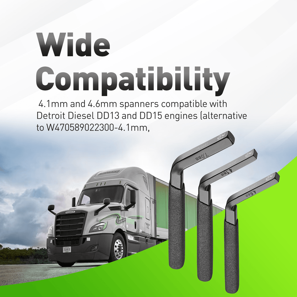 Detroit & Cummins Coverage: 4.1mm & 4.6mm for Detroit DD13/DD15/DD16; 7.0mm for Cummins ISX—precise Jake Brake lash setup. Replaces W470589022300, W470589042300, 3163530.