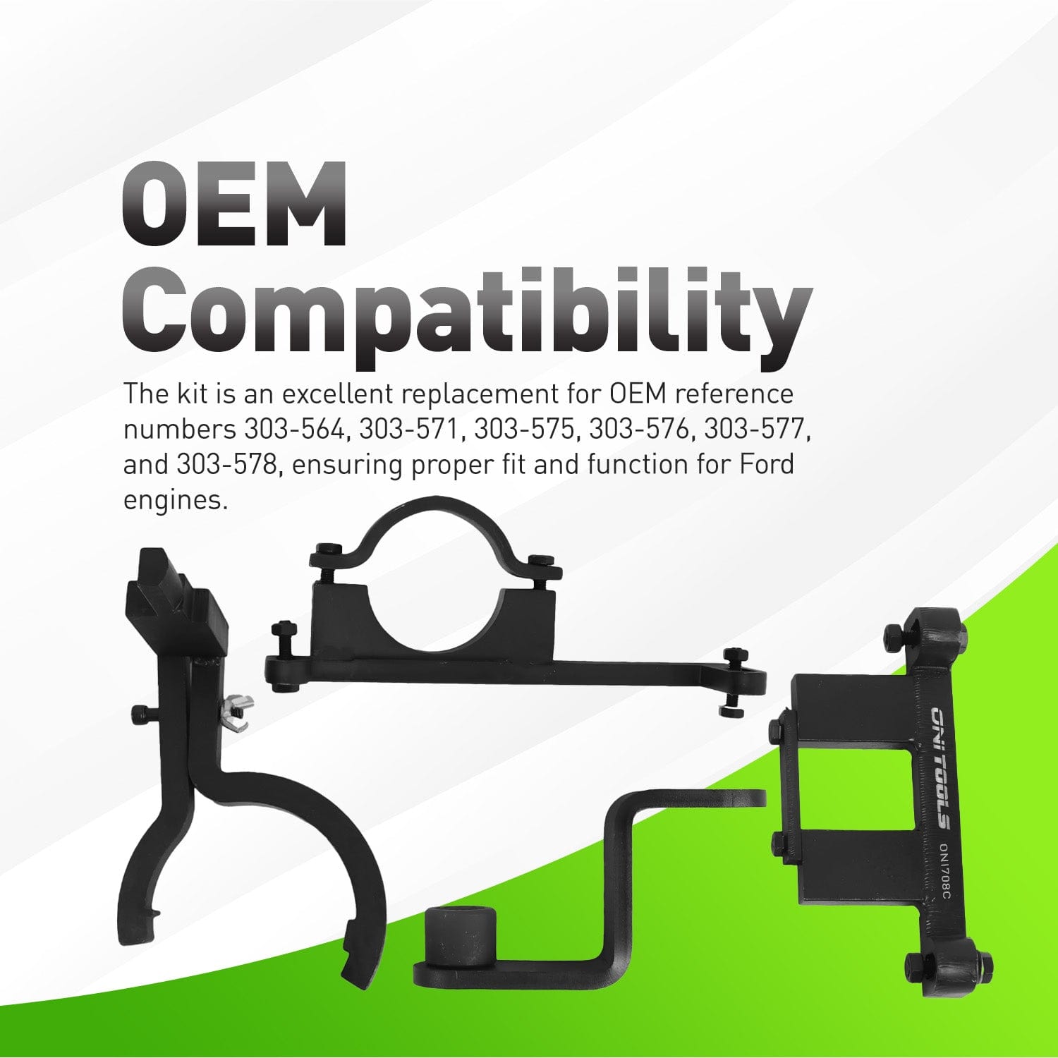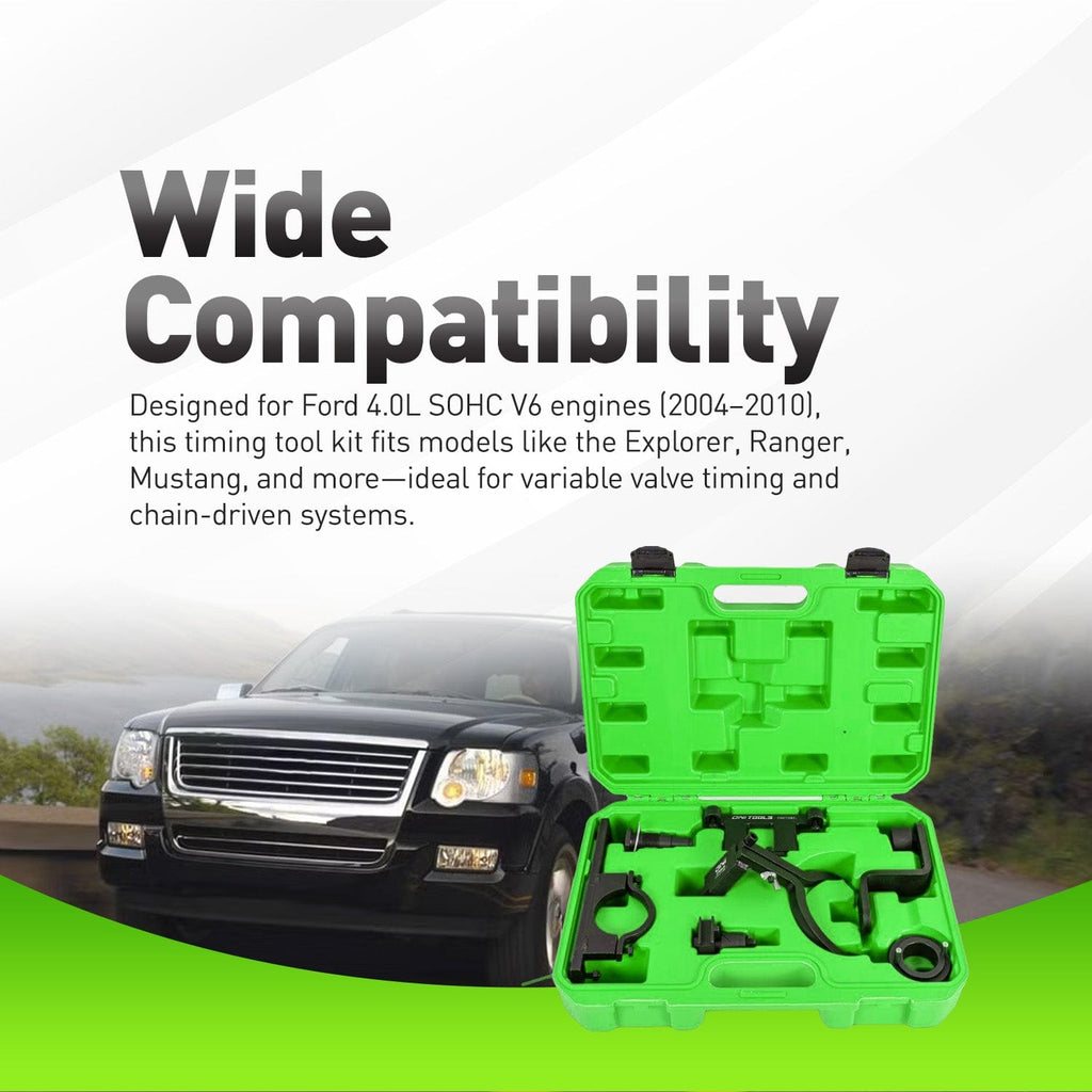 Service the Ford-family 4.0L SOHC V6 the right way with the Oni Tools Camshaft Timing Tool Kit. Engineered for accurate cam locking and alignment during timing chain replacement, head gasket work, and valve-train repair, this pro-grade set delivers consistent results across popular 4.0L SOHC V6 platforms from 1997–2011. The kit replaces the common OEM service tools (6488, 6478 / 303-564, 6479 / 303-573, 6480 / 303-576, 6481 / 303-577, 6482 / 303-578, 6484 / 303-571, 6485 / 303-565, 303-575) and covers high-volume applications such as midsize SUVs, body-on-frame pickups, and select performance trims. Precision-machined, hardened components resist flex and wear; the molded case keeps everything organized for mobile or bay use. Whether you’re a dealership technician or a DIY expert, expect faster setup, cleaner timing marks, and fewer comebacks. Engine size reference: 4.0L SOHC V6 (≈4015cc).