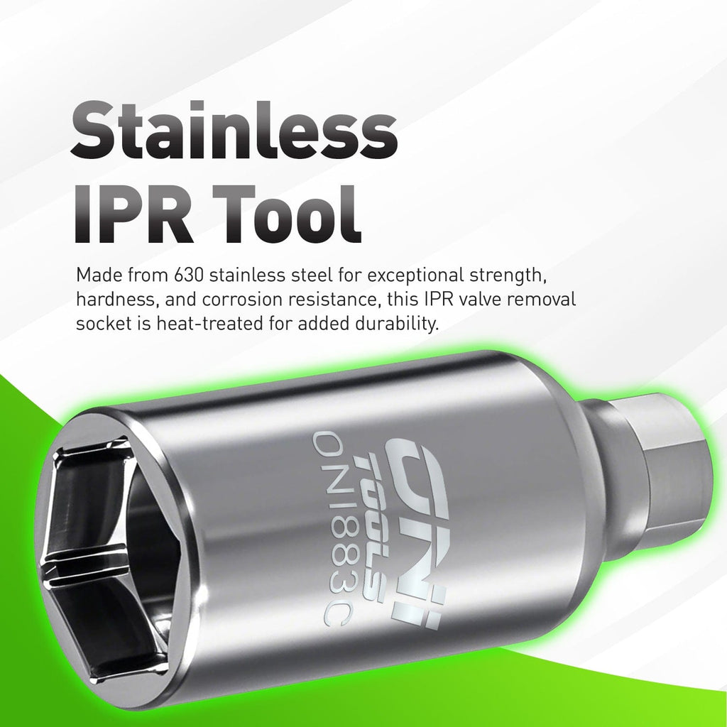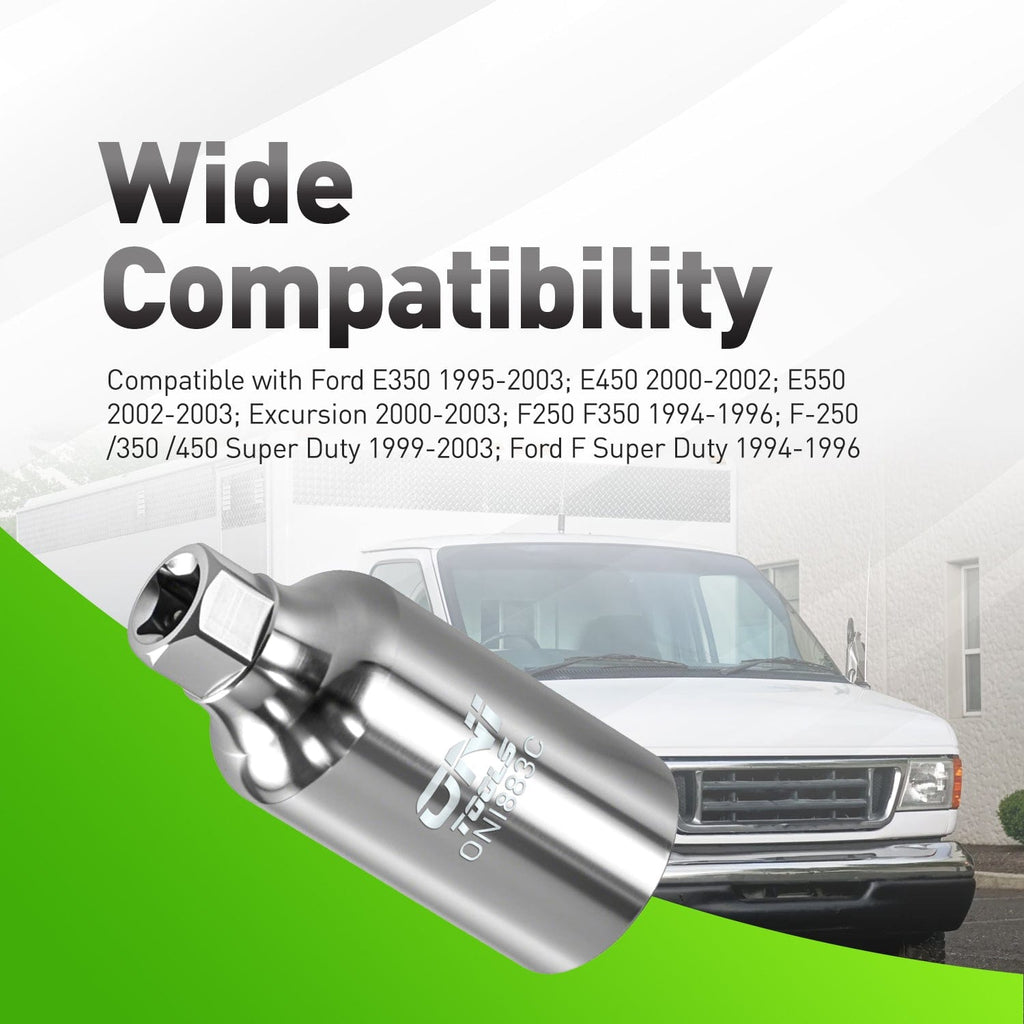 Service the 7.3L Powerstroke IPR (Injector Pressure Regulator) the right way. The Oni Tools IPR Valve Removal Socket is a 29 mm (1-1/8") deep, 3/8"-drive tool engineered for Ford E-/F-Series diesel platforms. A slim profile and connector-safe relief let you reach the valve without damaging wiring, while heat-treated stainless construction delivers high strength and long-term corrosion resistance. Use with a 3/8" torque wrench for precise installation or a 3/4" open-end wrench when clearance is tight. Ideal for diagnosing hard-start, surging, and pressure control issues, this pro-grade socket replaces OE service tool function and matches the required hex depth for clean removal and re-torque. Compatible models include E350/E450/E550, F-250/F-350 (OBS & Super Duty), F-450 Super Duty, and Excursion in the 1994–2003 7.3L Powerstroke range.